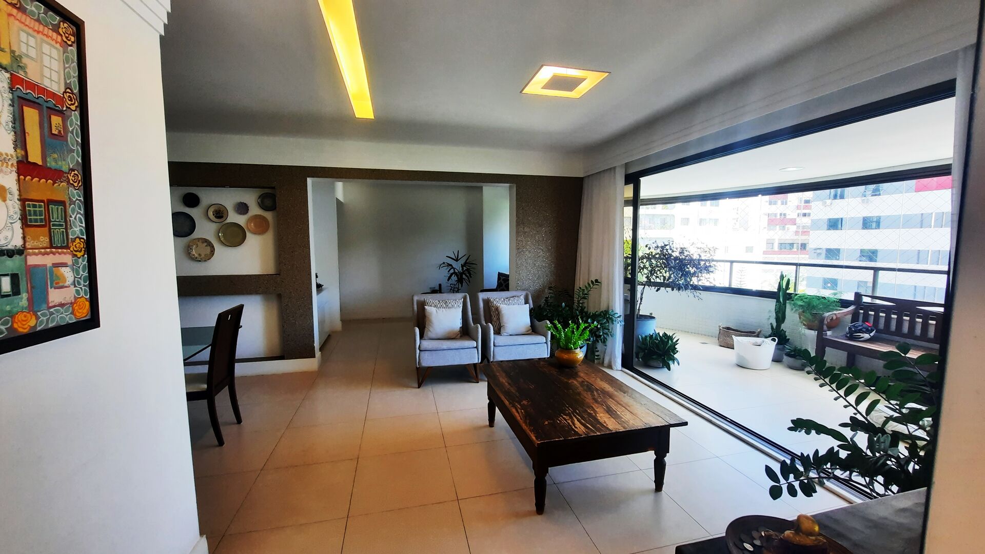 Excelente apartamento com 3 Suites, Sala em três ambientes bem definidos, varanda com fechamento em cortina de vidro, cozinha, área de serviço, dependência completa, lavabo e gabinete.