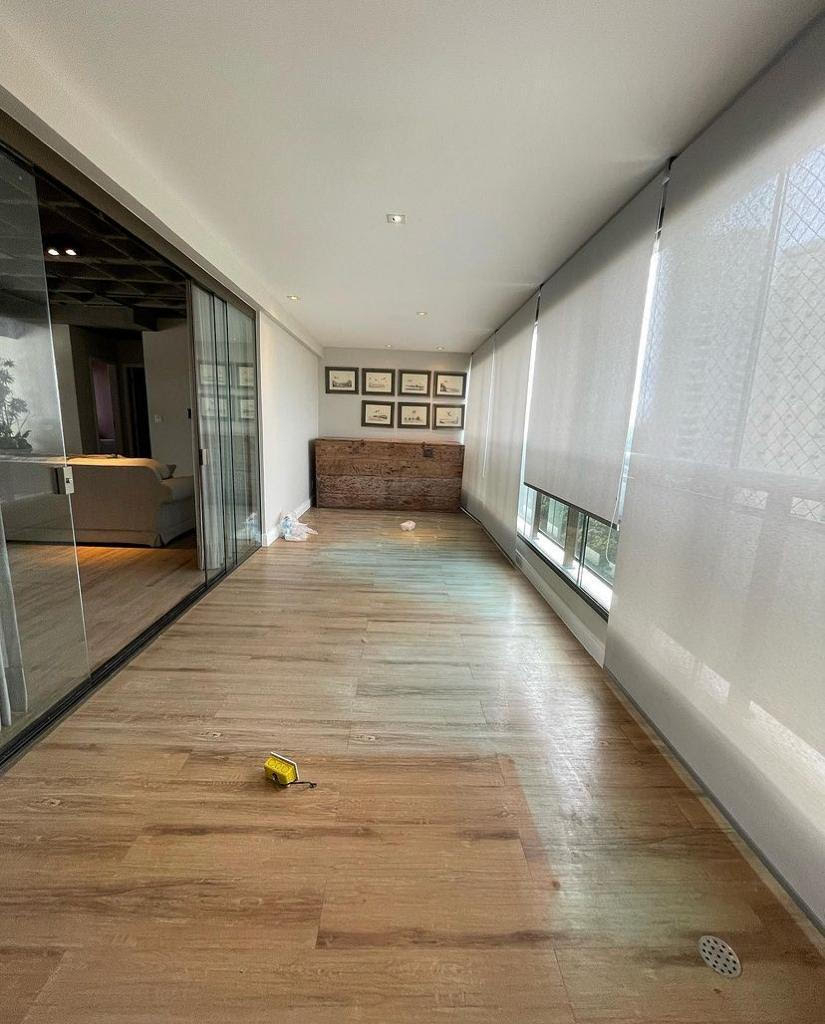 Com 3 suítes, closet, sala ampla, varanda integrada com fechamento, cozinha completa, área de serviço, dependência. Apartamento semi mobiliado, com projeto de iluminação. Armários em todos os ambientes.